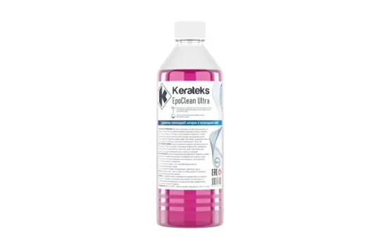 Удалитель стойких застарелых остатков эпоксидной затирки, эпоксидного клея «KERATEKS EpoClean Ultra». Предназначен также для удаления эпоксидной затирки из швов в любое время после окончания работ. Представляет собой густой усиленный высокоэффективный кислотный состав красного цвета. Упаковка – стеклянная бутылка 0.5 л.